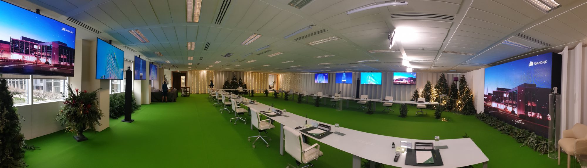 Crea un ambiente mágico con nuestras pantallas de alta resolución que permiten proyectar imágenes navideñas personalizadas, desde animaciones hasta tu logo corporativo en un entorno festivo.